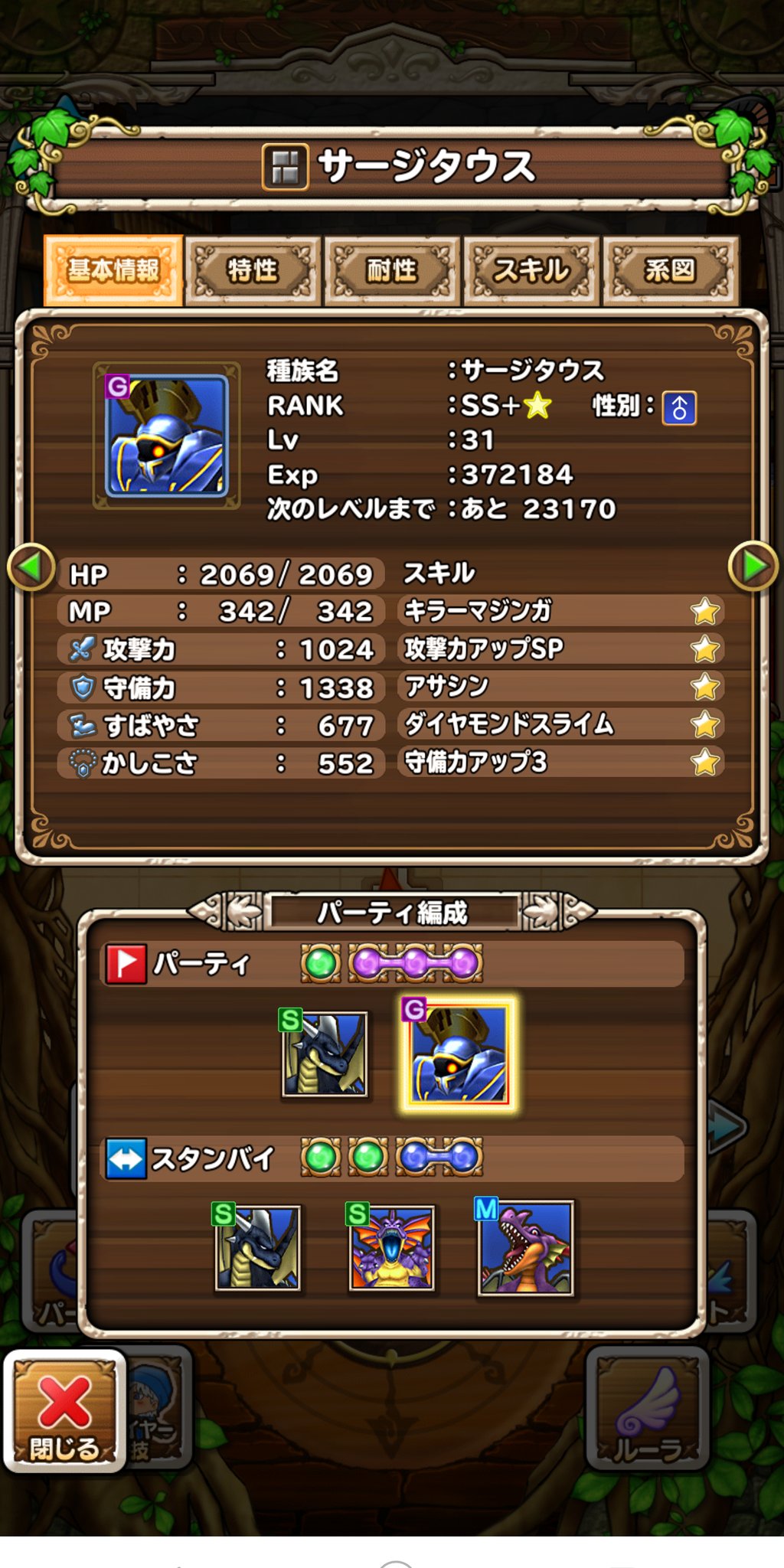 テリーのワンダーランド3D超初心者です。 勝ち抜きバトルでなかなか100勝までいかないので、上級者さんのパーティを参考に組んでいきました。 サージタウス むしのしらせ ダイヤモンドスライム メタルつぶ Yahoo!ゲームサージタウス おすすめスキル とかで来る人結構いましたからね・・・ さすがにDQMJ2時代のおすすめスキルとか今更見てもどうしようもないですからねー 新しくテリー用にかきますです。ドラゴンクエストモンスターズ テリーのワンダーランド3d攻略所 サージタウス ホーム;